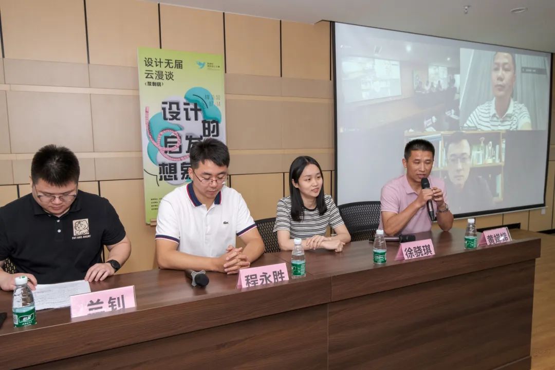 江西理工大学工业设计系主任黄金发通过视频连线与大家进行了分享,黄老师认为无论是文创,还是纺织鞋服,又或者是家具,其实用到的方法相通的。从官相成型,明道之气,意向造物,这三个角度出发和与会者们畅谈创意方法的问题。